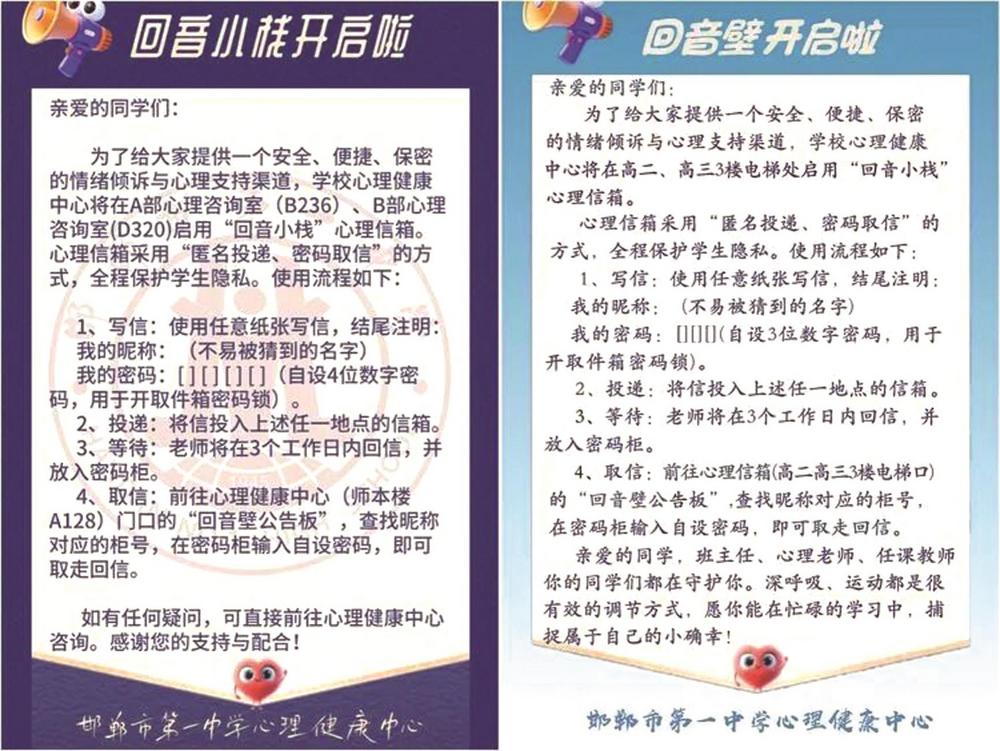 在邯郸市一中,有三个安静的角落,它们不事张扬,却蕴藏着校园里最动人的教育温度。这里没有醒目的标识,却成为无数少年心事的栖息地;不曾高声喧哗,却凭借笔墨的力量,悄然直抵心底——这就是学生专属的“回音小栈”心理信箱,一座用信任搭建、以真心守护的心灵桥梁。
