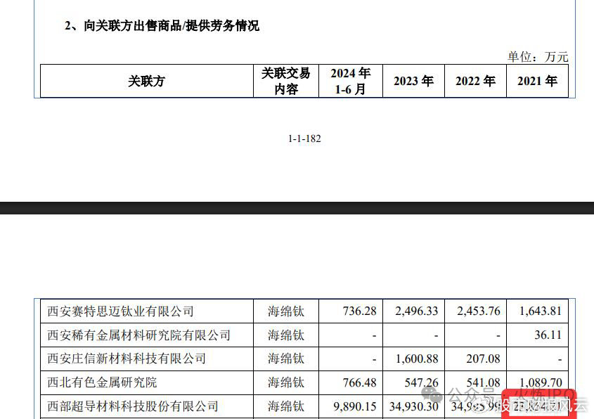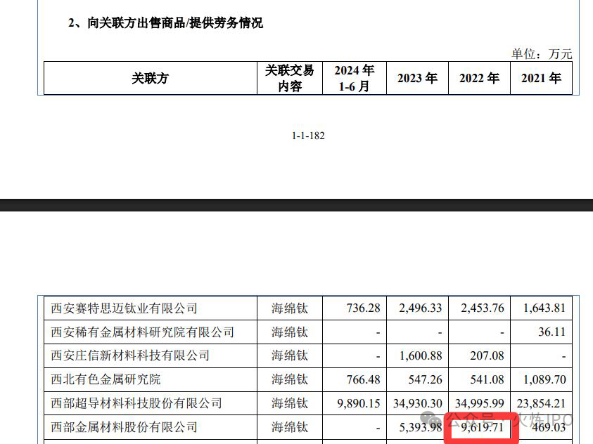 (二)据2024年12月31日挂网的招股书,报告期各期其向西部材料销售海绵钛的关联销售收入分别为469.03万元、9,619.71万元、5,393.98万元,0元。